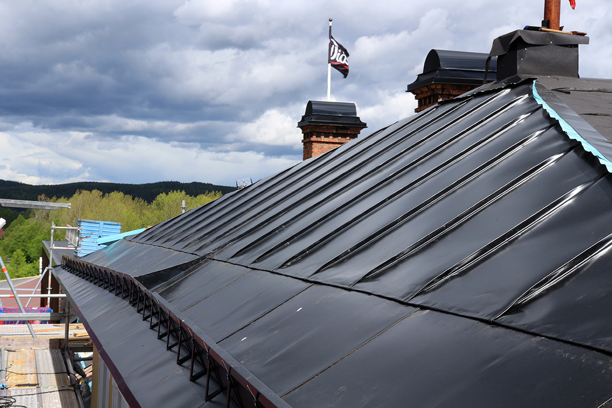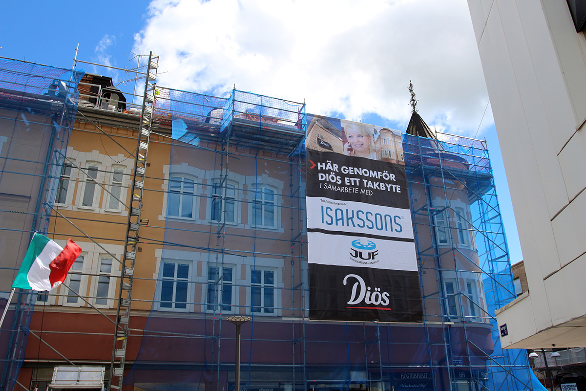 Mitt i centrala Borlänge ligger ett kulturmärkt hus vid Sveatorget. Huset är byggt år 1903. Fastigheten ägs av Diös fastigheter och används som kontor och handelsplats. Med försiktig hand lägger vi nu om hela takytan på 1500 m² under 2015.