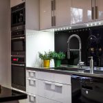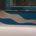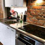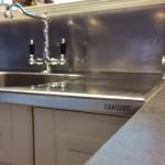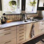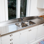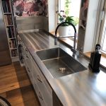 Denna diskbänk har kanten Isakssons Modern samt uppvikta kanter runt...