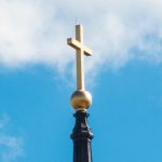 Ett 4 meter högt kyrkkors i koppar sitter på tornet...