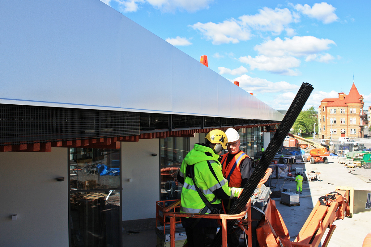 Nybyggnad bussteminal Isakssons genomför alla plåtarbeten på den nya bussterminalen i Falun, exempelvis lanterniner, garneringsarbeten och undertak i koppar i länkbyggnaden.
