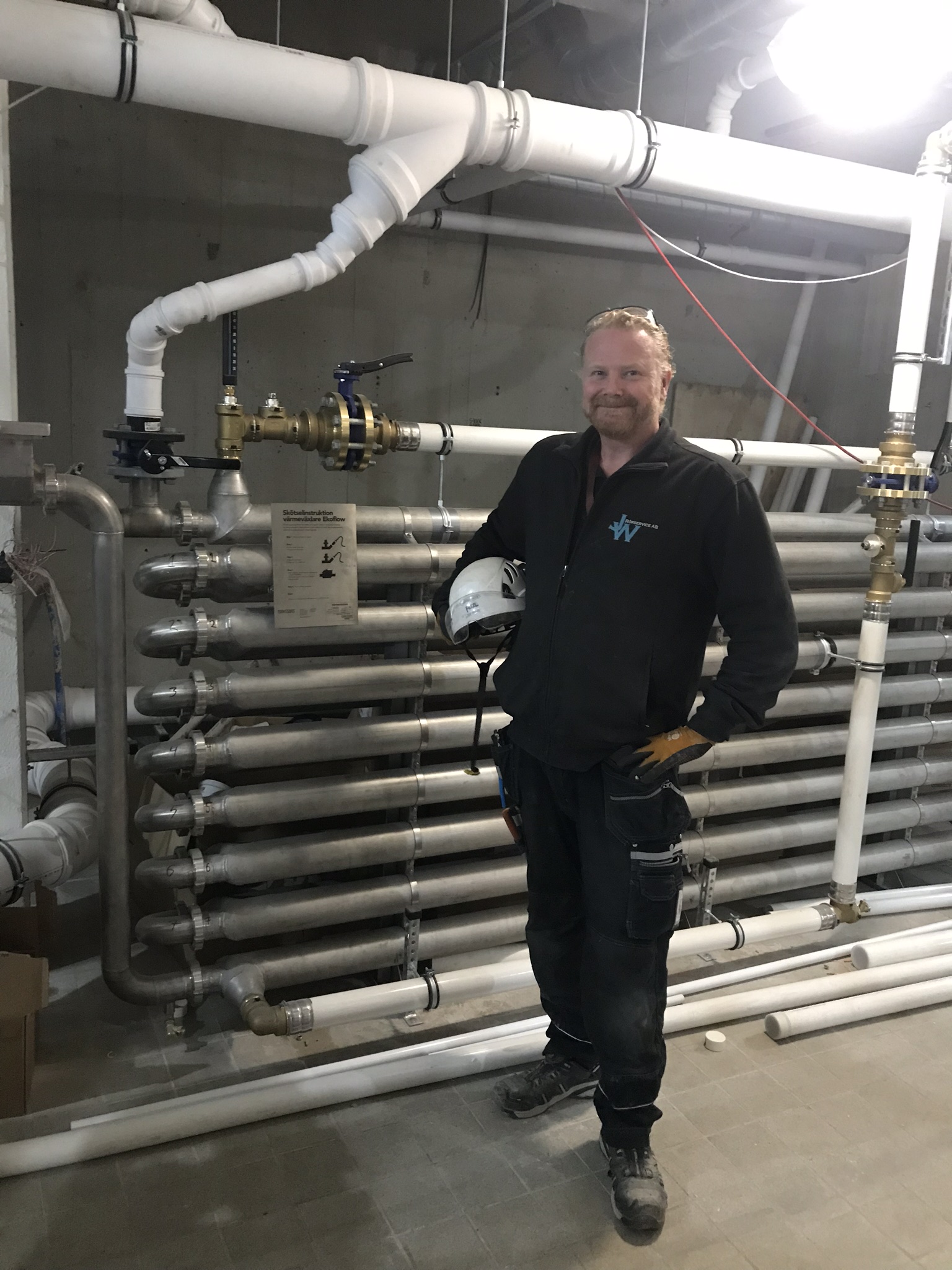 Vi blev kontaktade när det gällde värmeåtervinningen på utgående gråvatten. En av utmaningarna här, var att komma fram till den plats där ekoflow skulle monteras. Att få in vår ekoflow med längd på 6 meter var otänkbart. Efter lite omberäkningar på besparingen föll valet på vår variant i 3 meters längd, den gick exakt in i fastigheten.